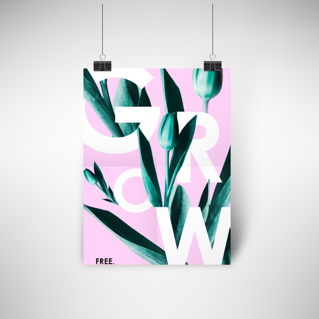 Elaboración de un cartel decorativo en dos tonos, con el que quise plasmar la sintonía entre el mensaje escrito y el visual.